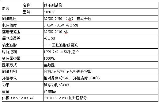 符合GB4706.1标准,时间、漏电流、交、直流电压全数显,耐压从20kV~100kV、漏电流从0~200mA、时间1s~999s,用户可根据产品