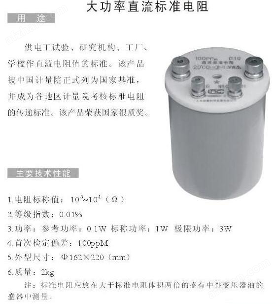 BZ3直流标准电阻技术指标