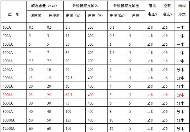 一、SLQ系列升流器(大电流发生器)主要技术参数: