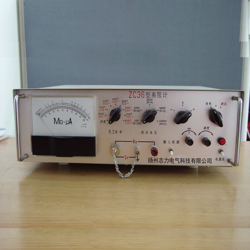 ZC36型高阻计是一种直读式的超高电阻和微电流两用仪器。仪器的最高量限1017Ω电阻值(测试电压为1000V)和10-14A微电流。适用于科研、工厂、学校、企业部门对绝缘材料、电工产品、电子设备以及元件的绝缘电阻测量和高阻值兆欧电阻的测量,也可用于微电流测量。